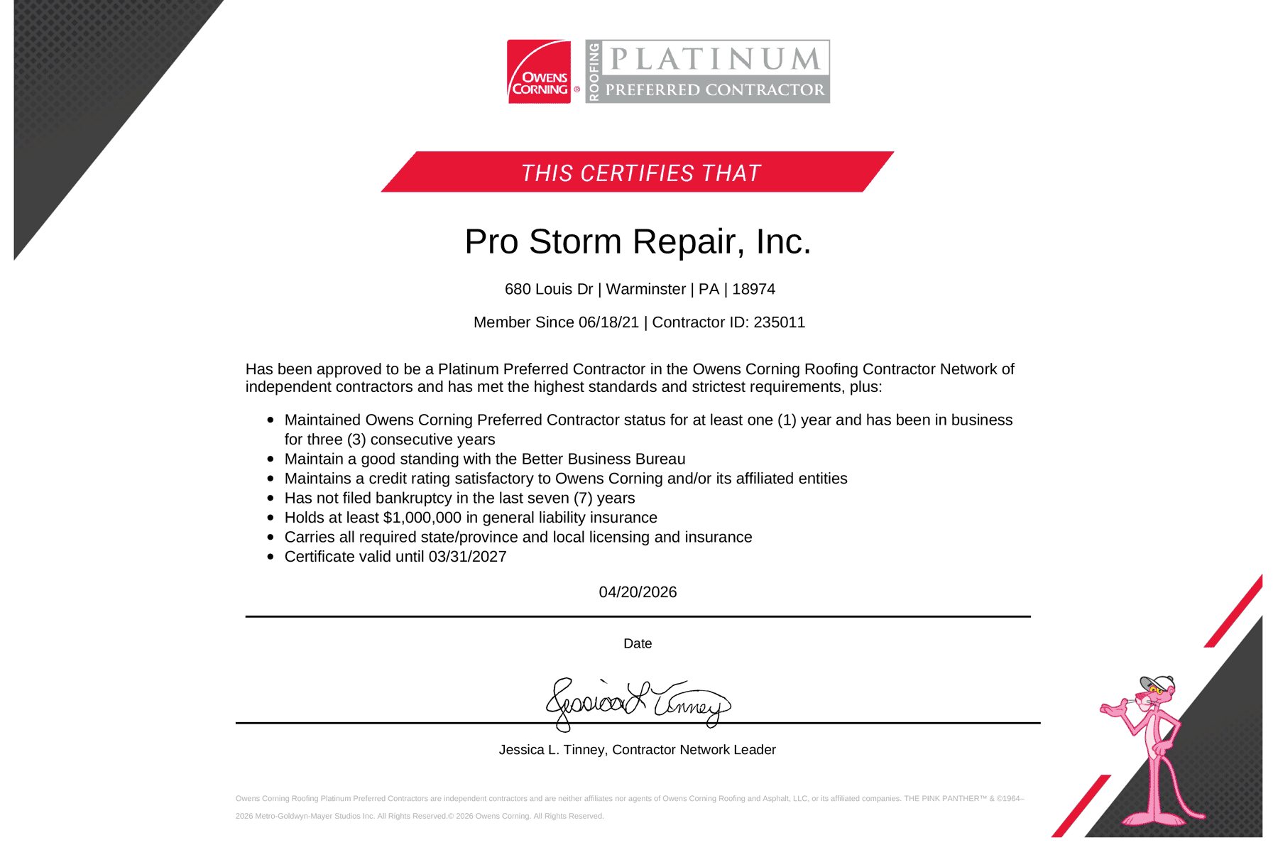 View our state licenses and insurance liability certificates below: